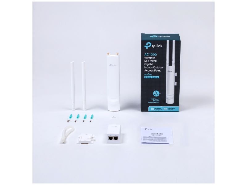 AC1200 Dual Band Outdoor Access Point, Qualcomm, 867Mbps at 5GHz + 300Mbps at 2.4GHz, 1 Gigabit LAN, 802.3af PoE and Passive PoE, 2 External Antennas, IP65 Weatherproof, MU-MIMO, Band Steering, Beamforming, Airtime Fairness, Centralized Management, Captive Portal, Load Balance, Rate Limit, VLAN |