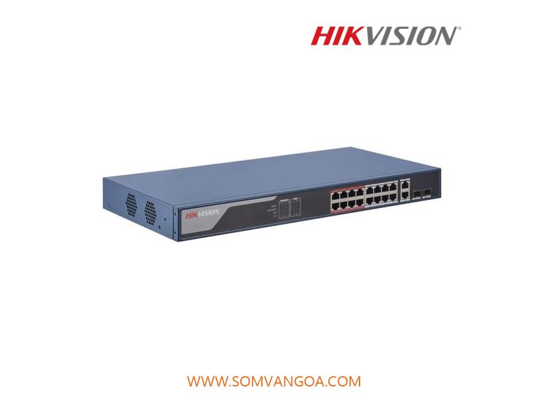 16 × 100 Mbps PoE RJ45 ports, 2 × gigabit combos.